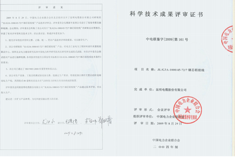 8、2009年4月首批研制成功寧夏寧東一山東青島±660kv直流輸電工程用1000mm2鋼芯鋁絞線。